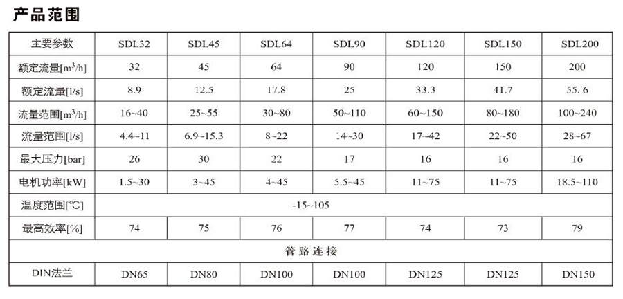SDL90/SDLT90是一種多功能產品,可以輸送從自來水到工業液體的各種不同介質,適用于不同溫度、流量和壓力范圍。